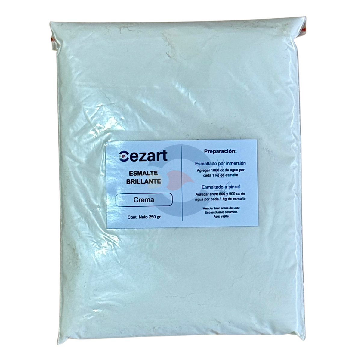 – Ejemplo de preparación: 250 gr de esmalte + 225 a 250 ml de agua, ajustar según consistencia deseada