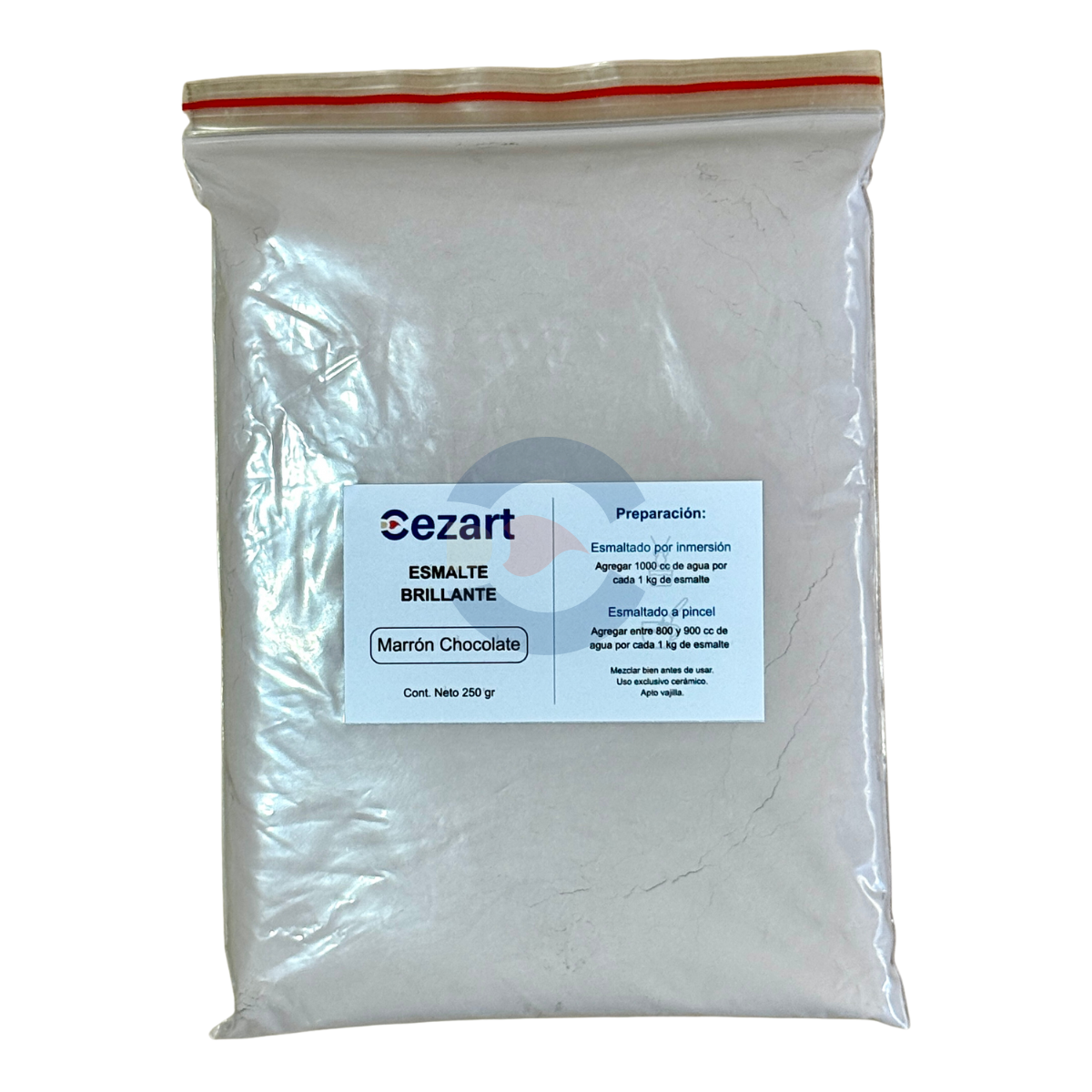 – Ejemplo de preparación: 250 gr de esmalte + 225 a 250 ml de agua, ajustar según consistencia deseada